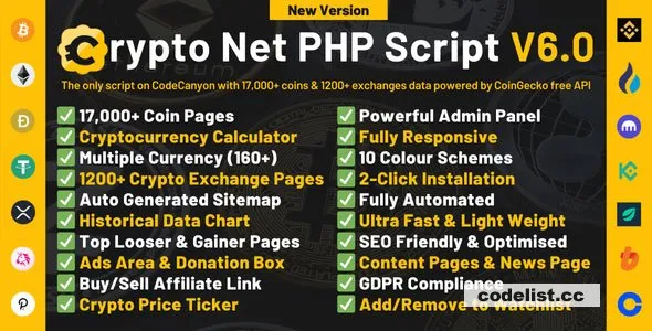Crypto Net v6.0 Nulled – CoinMarketCap, Prices, Chart, Exchanges, Crypto Tracker, Calculator & Ticker PHP Script