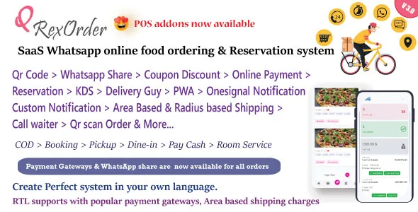 QrexOrder v3.1.9 Nulled – SaaS Restaurants / QR Menu / WhatsApp Online ordering / Reservation system